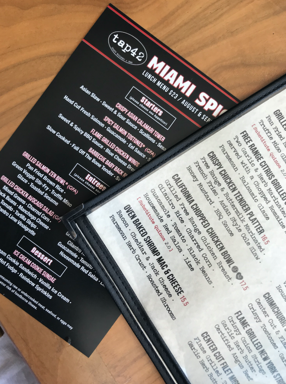 The food was cooked to perfection. I could tell they made the food to order, which turned out to be nothing shy of phenomenal. We dined on a beautiful day & sat outside. The service was great & we received our food relatively quick. Go on Sunday. They have amazing brunch specials & up-beat music. Although no view, Tap 42 keeps a lovely assortment of cold craft beer on tap. I love stouts/porters & they keep a steady line up of crafty, craft beer all year long!